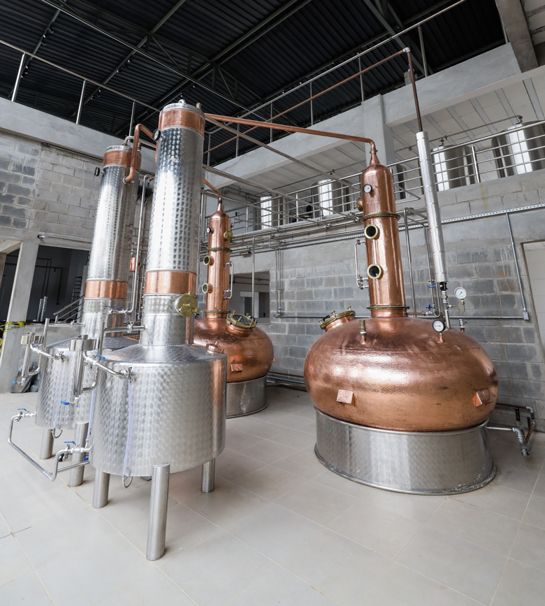 Nossa estrutura foi pensada para a excelência na produção de destilados. Desde a seleção da matéria-prima até o engarrafamento, cada etapa do processo é realizada com o máximo cuidado e tecnologia de ponta.